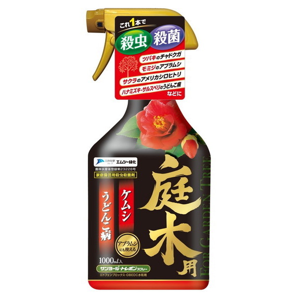 庭木のケムシやアブラムシの害虫防除をしながら、同時に病気防除ができる殺虫殺菌スプレーです。