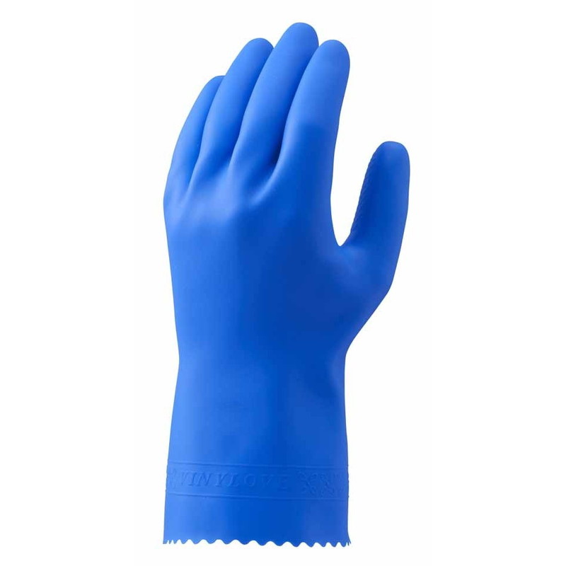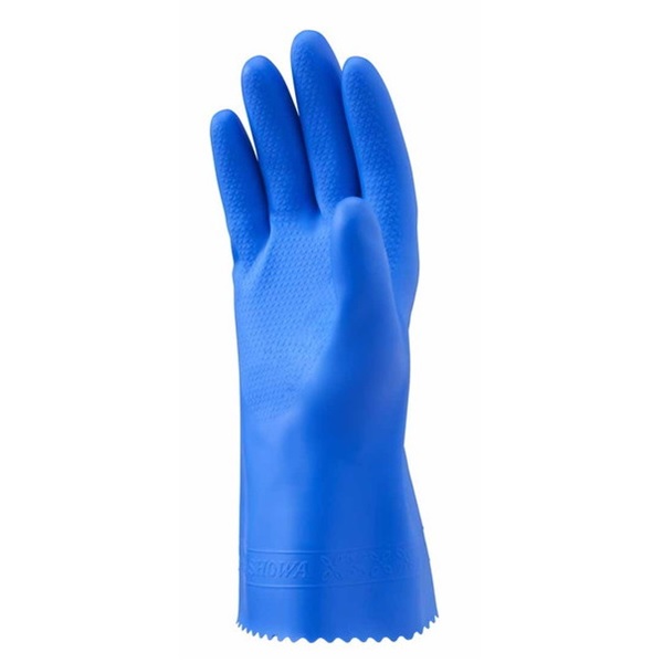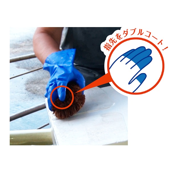 ●裾幅が広く、手首まで覆う立体的な形状と、手袋内面の植毛加工により、ぬぎはめしやすくなっています。
