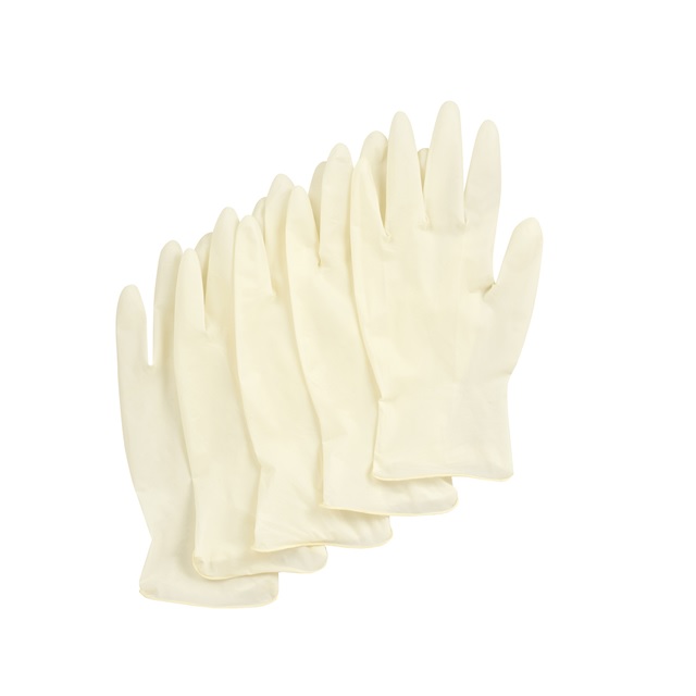 しなやかな天然ゴム製の使い切り手袋。