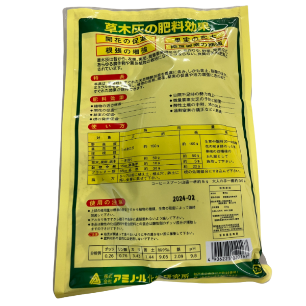優れた浸透性を持つ天然加里を豊富に含み、植物に必要な燐酸をたっぷり含有する、有機栽培に適した肥料です。