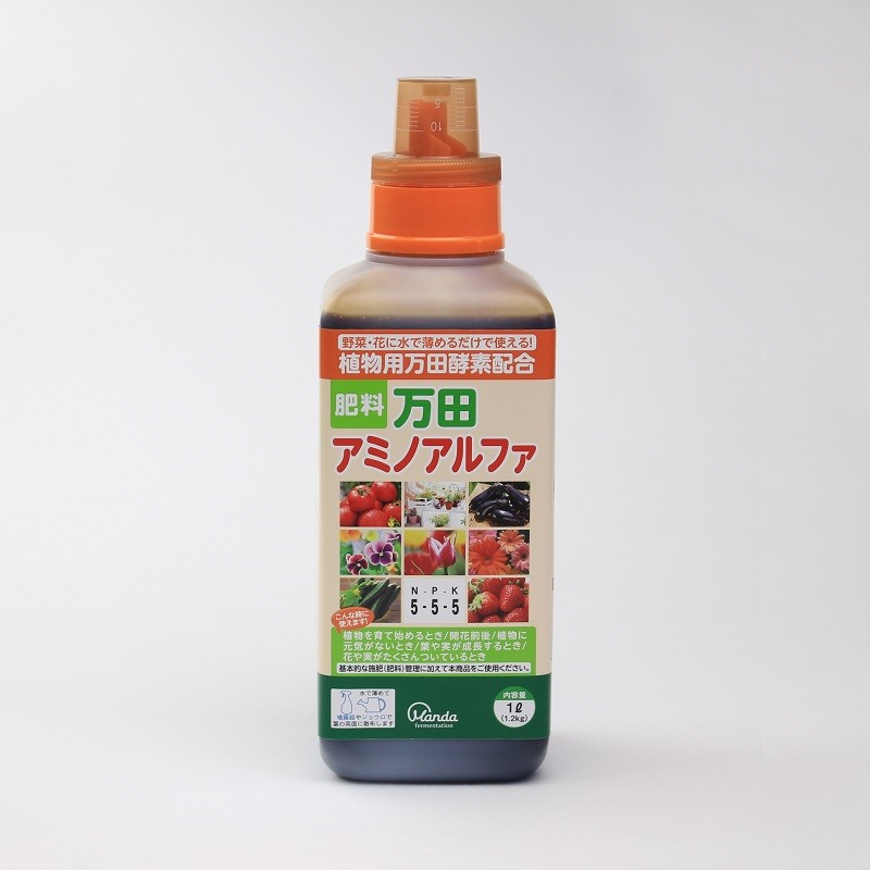 果実類、根菜類、穀類、海藻類など数十種類の植物性原材料を使用し、3年以上発酵・熟成させた植物発酵生産物に、有機質を主体とした液肥を配合した肥料です。