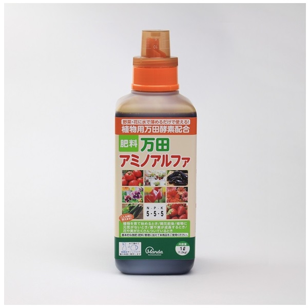 果実類、根菜類、穀類、海藻類など数十種類の植物性原材料を使用し、3年以上発酵・熟成させた植物発酵生産物に、有機質を主体とした液肥を配合した肥料です。