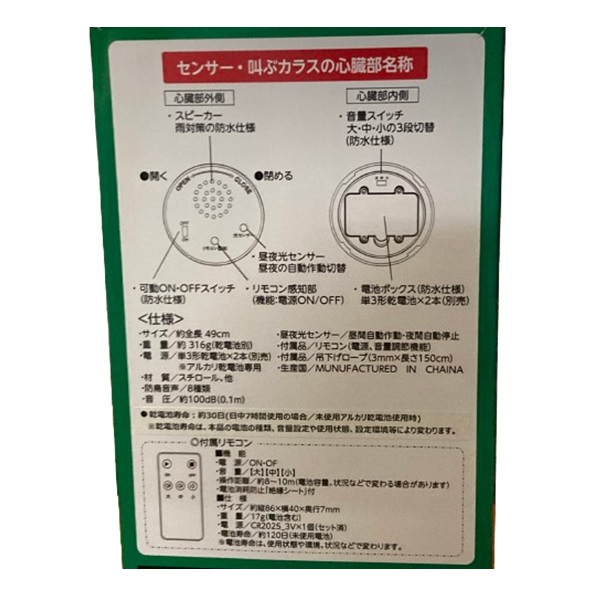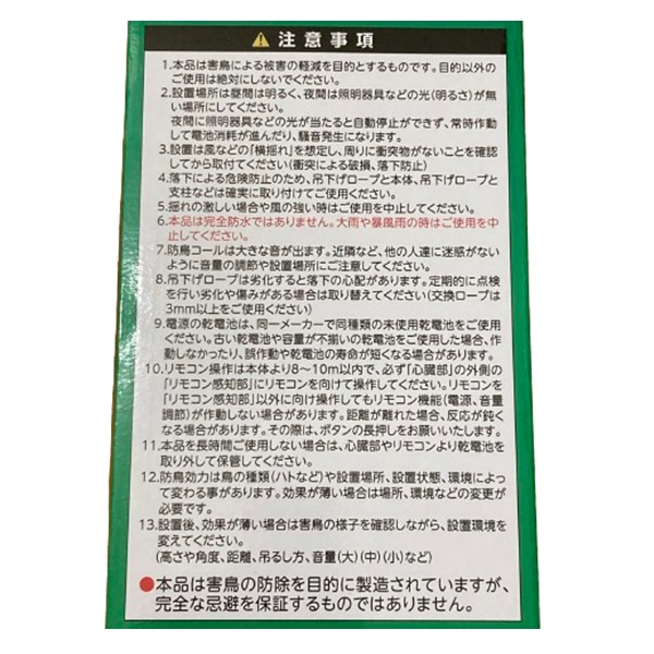 恐怖の音響(防鳥コール) が強敵カラス・害鳥を威嚇。