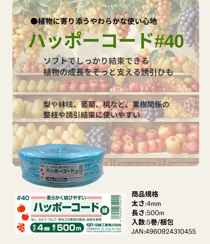 梨や林檎、葡萄、桃など、果樹関係の整枝や誘引結束に使いやすい