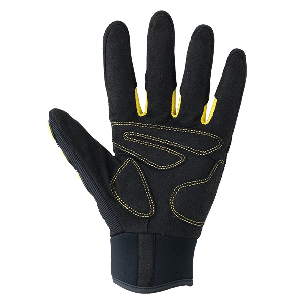 手の平部分に補強アテを配置しているので、耐摩耗性に優れ耐久性を向上させました。
