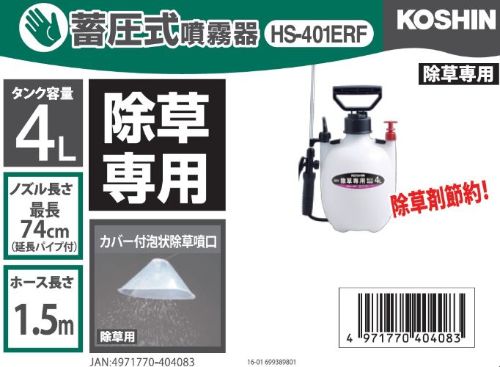 〇特長:手軽に除草剤散布に使えるスタンダードタイプ。 カバー付き除草噴口+延長パイプ