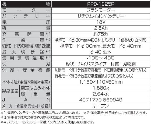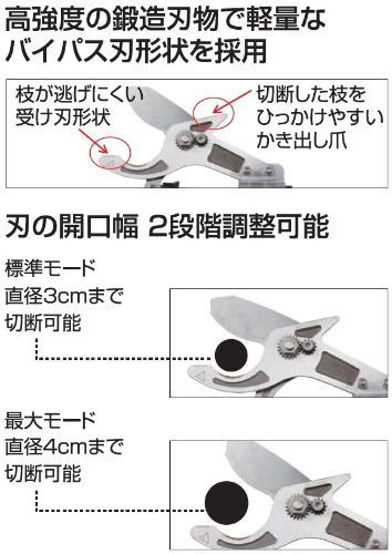 軽量パワフル、直径4cmの太い枝も切断可能!