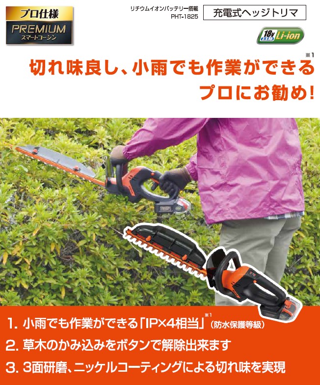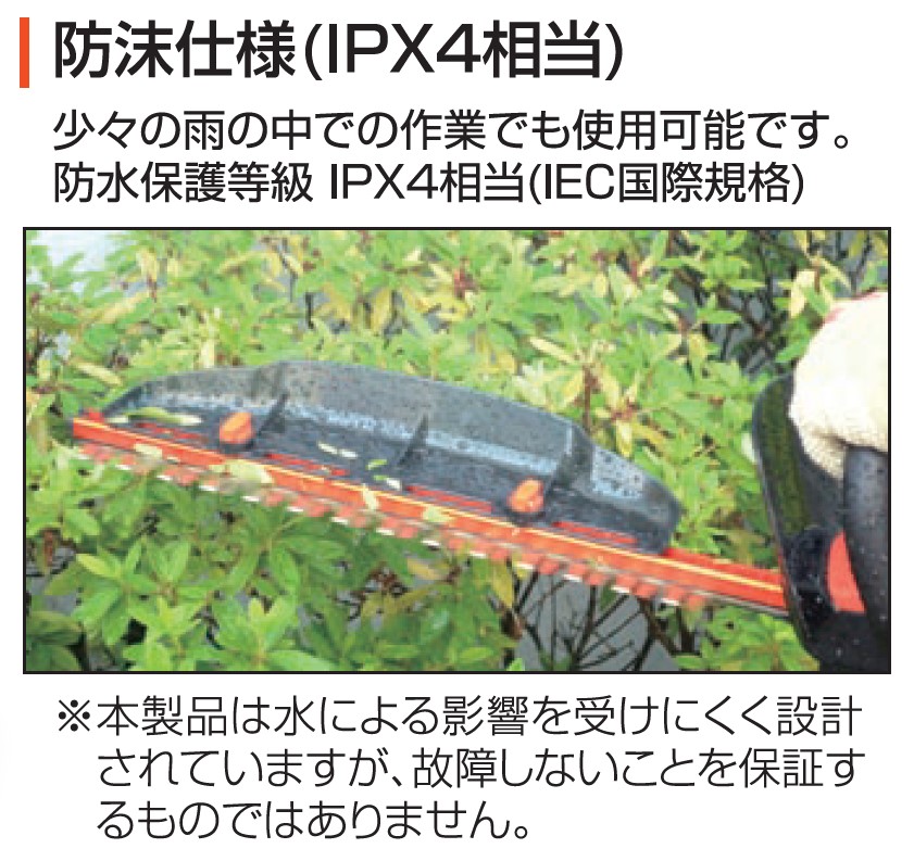 〇特長:切れ味が良く、小雨でも作業が出来るコードレスヘッジトリマー!