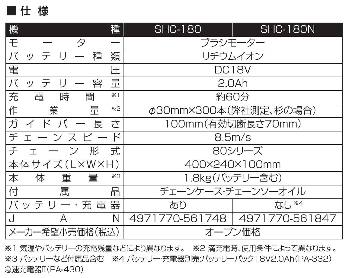 工進 充電式ハンディチェンソー SHC-180
