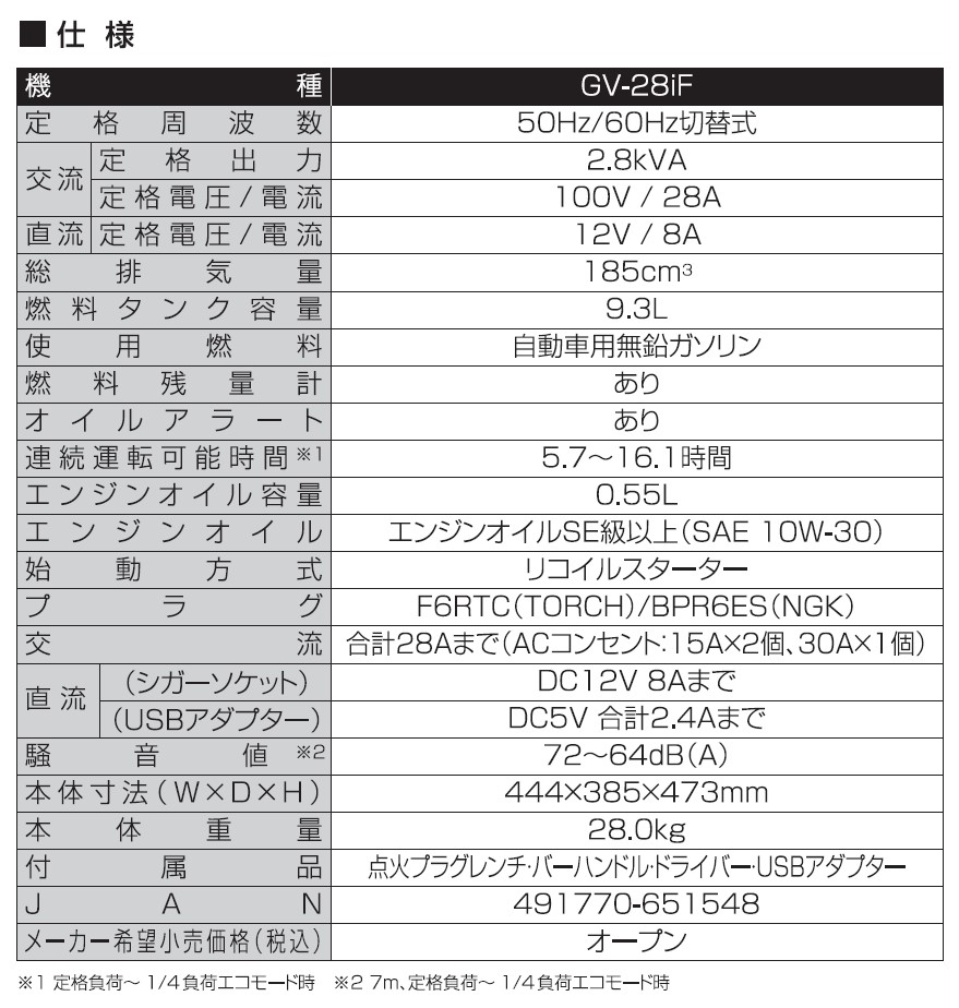 工進 インバーター発電機 GV-28iF