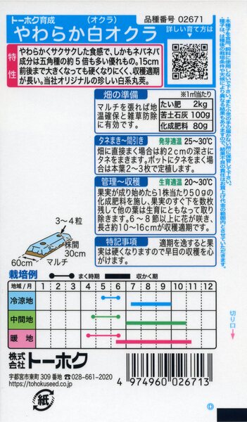 大きくなっても柔らかく美味しいエメラルド型の白系オクラです。