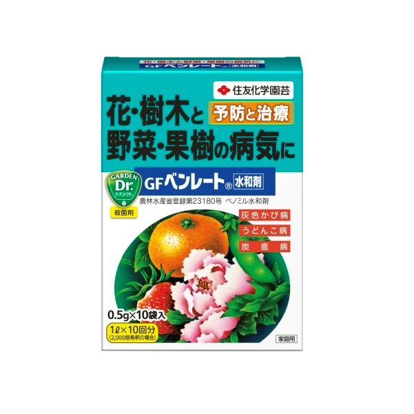 ばらの黒星病、うどんこ病に優れた効果があります。浸透移行作用により病原菌の侵入を防ぐ予防効果と、