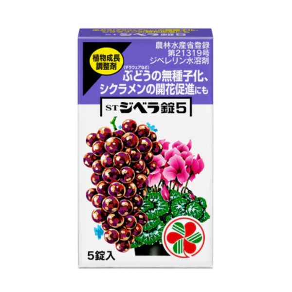 ぶどう(デラウェアなど)の無種子化や果粒肥大促進、草花の開花促進、草丈伸長促進、野菜の生育促進などの効果があります。