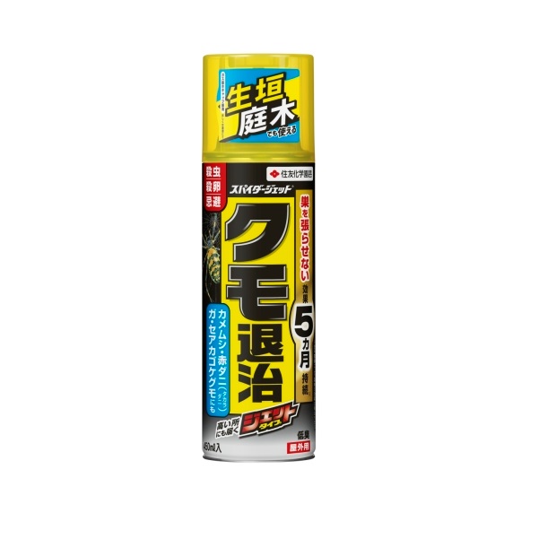 強力噴射で高所や手の届かないところにいるクモ、カメムシなどを退治。クモには殺虫・殺卵・忌避・巣を張らせない4つの効果。