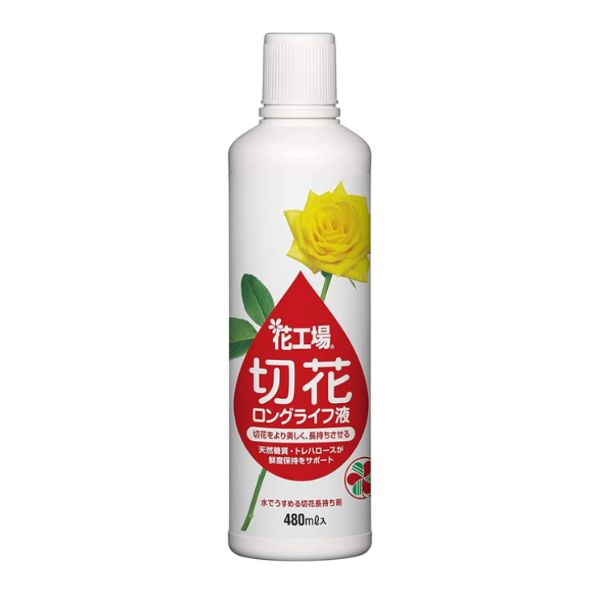 切花の開花に必要な養分に、食品の鮮度保持にも使われる天然の食品成分・トレハロースを配合した切花長持ち剤で、切花をより美しく、長く楽しむことができます。かび、細菌の抑制成分が水の腐敗を防ぎ、切花を長持ちさせます。 水が減った場合は水を加えるだけです。新たに溶液を作る必要はありませんので手軽にご使用できます。