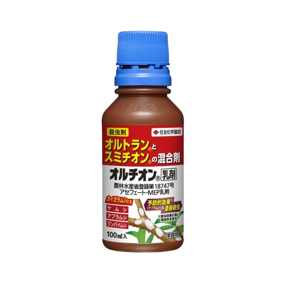 家庭園芸で代表的なオルトランとスミチオンの有効成分を混合した殺虫剤です。