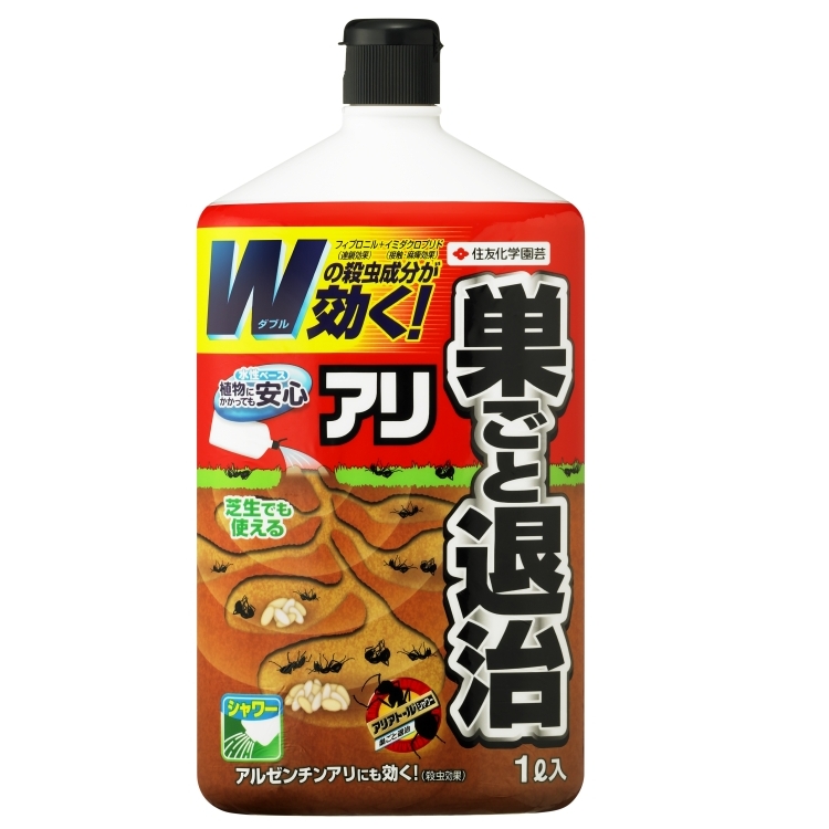 お庭の植物にもやさしい水性タイプで、アリが巣を作りやすい芝生でも安心して使えます。