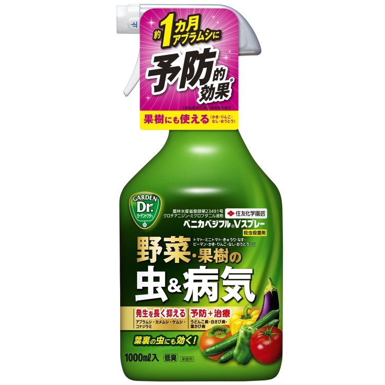 アブラムシ・カメムシなどの発生を長く抑え、うどんこ病・白さび病・葉かび病の予防と治療ができる、殺虫殺菌剤です。