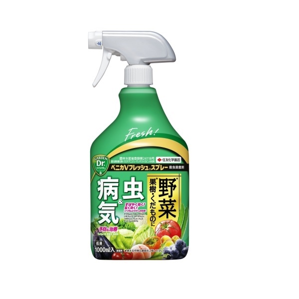 野菜、果樹、花、庭木など幅広い植物に使える殺虫殺菌スプレー