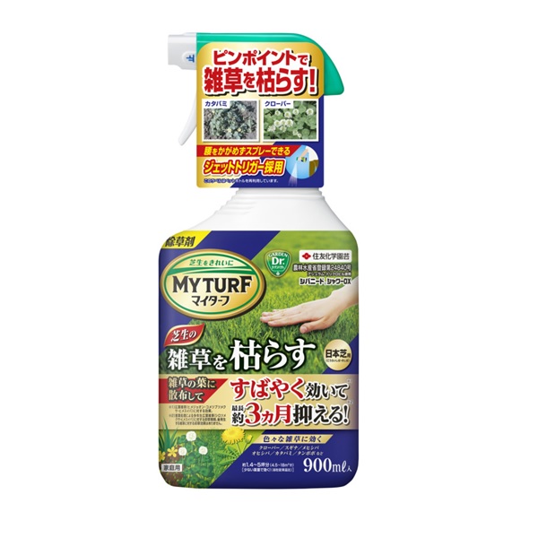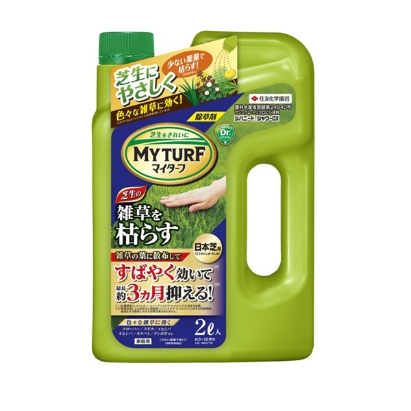 芝生をきれいに!:芝生にやさしく、芝生の中に生えた雑草を根まで枯らします。