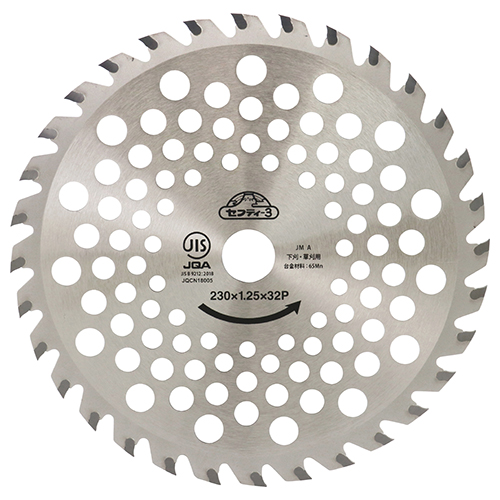 外径:230mm 刃数:32P 刃厚:2.0mm 台金厚:1.25mm 穴径:25.4mm 25cc未満刈払機推奨 JIS規格適合商品