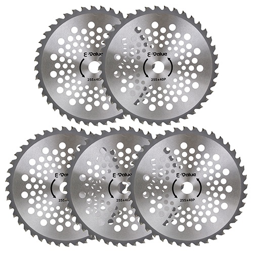 ●外径:255mm●刃数:40P●刃厚:2.0mm●穴径:25.4mm●刈払機推奨排気量:25cc以上●5枚組