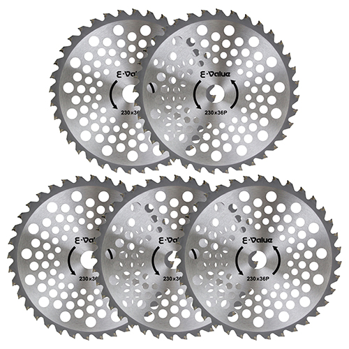 ●外径:230mm●刃数:36P●刃厚:2.0mm●穴径:25.4mm●刈払機推奨排気量:25cc未満●5枚組