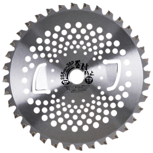 ●外径:255mm●刃厚:2.0mm●穴径:25.4mm●刃数:36●刈払機25cc以上におすすめ●斜め埋め込み