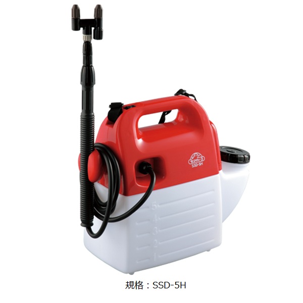 ●タンク容量:5L●電源:単1形乾電池6個(別売)●ノズル長さ:約40~90cm●重量(電池含む):約2.2kg●電池寿命(総噴霧量):(1頭口)約80L・(2頭口)約190L●噴霧量:1頭口約400ml・2頭口約660ml/分●噴射量:1頭口約640ml・2頭口約830ml/分●ホース長さ:約1.7m●本体:タンク・ポリプロピレン●ノズル:アルミ●ホース:塩ビ