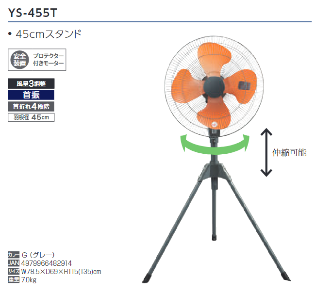 ・風量3段階・左右首振り90°・上下首折れ4段階