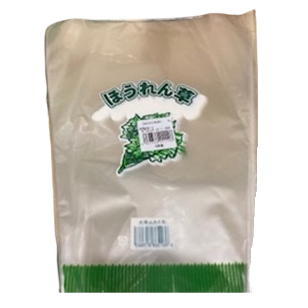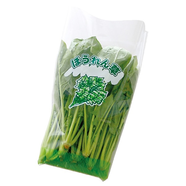 OPP防曇、トビシール、プラマーク入、印字「ほうれん草」、イラスト入。