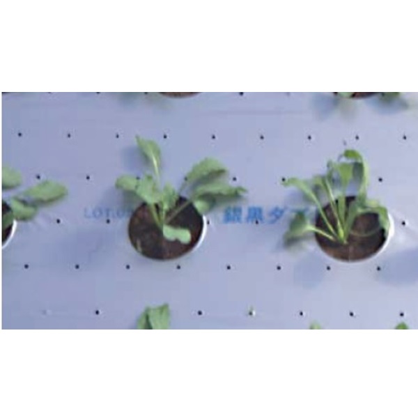 紫外線を含む光反射力と通気孔により、銀黒ダブルマルチより、さらに2℃ほど地温が下がります。