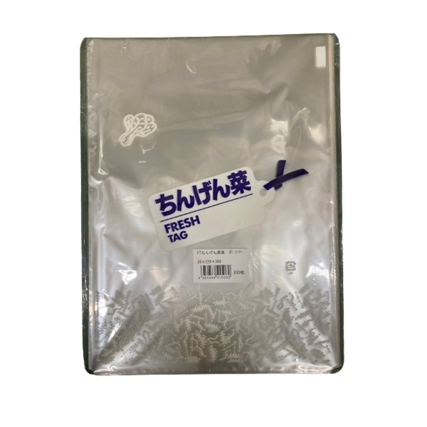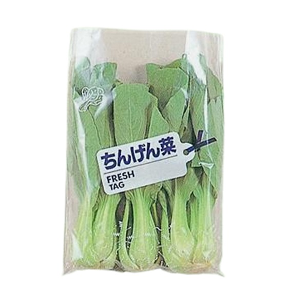 防曇加工により野菜がきれいに見えます。 印字:チンゲン菜(紫字)1袋=100枚入チンゲンサイ220X300 コーナーカット