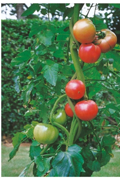 結束の手間が不要な支柱です。トマトの生長に従ってラセン形状内へ巻き込んで行きます。