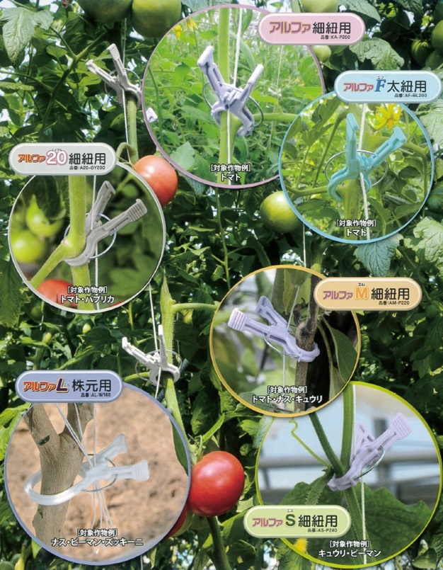茎径や紐の種類で選べる紐誘引用クリップです。
