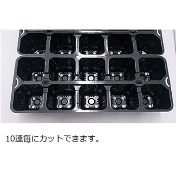 野菜苗や花壇苗の10連セット販売用資材です。10連が4つ連結しており、カゴトレー小深にピッタリ入ります。10連毎に切り離せます。